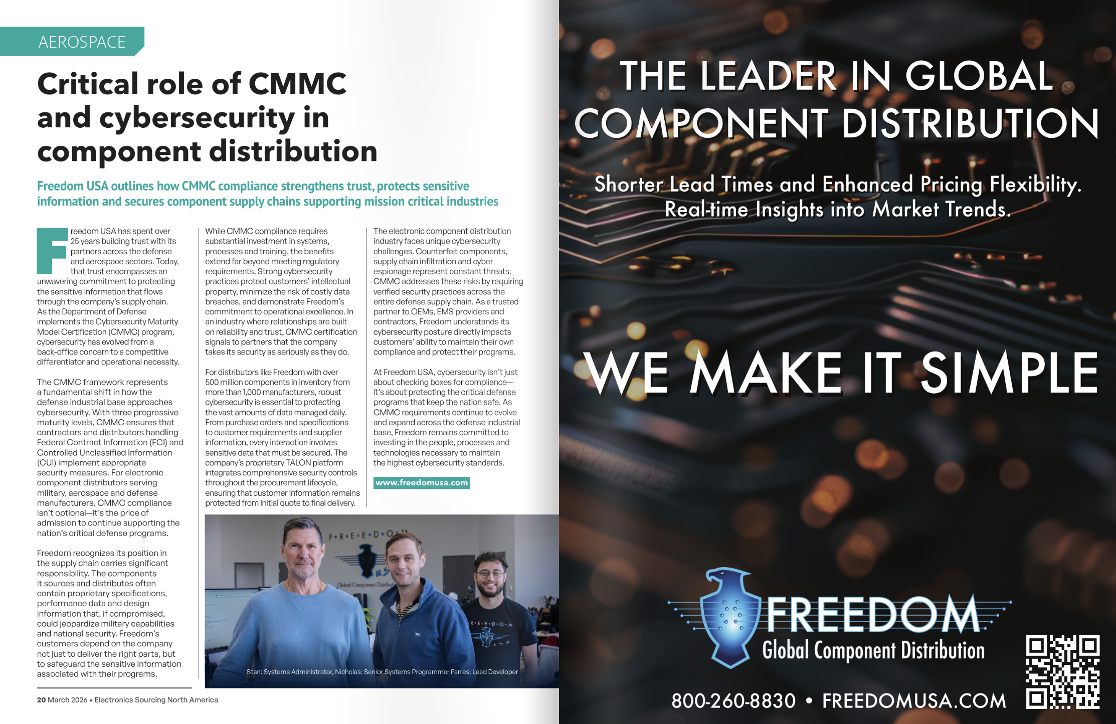 Over the past two decades, trust has been established as a cornerstone within the defense and aerospace supply chain. At Freedom USA, that trust has been built through consistent delivery, reliability, and protection of sensitive information. However, as digital threats have continued to evolve, cybersecurity has been elevated from a supporting function to a core operational requirement.